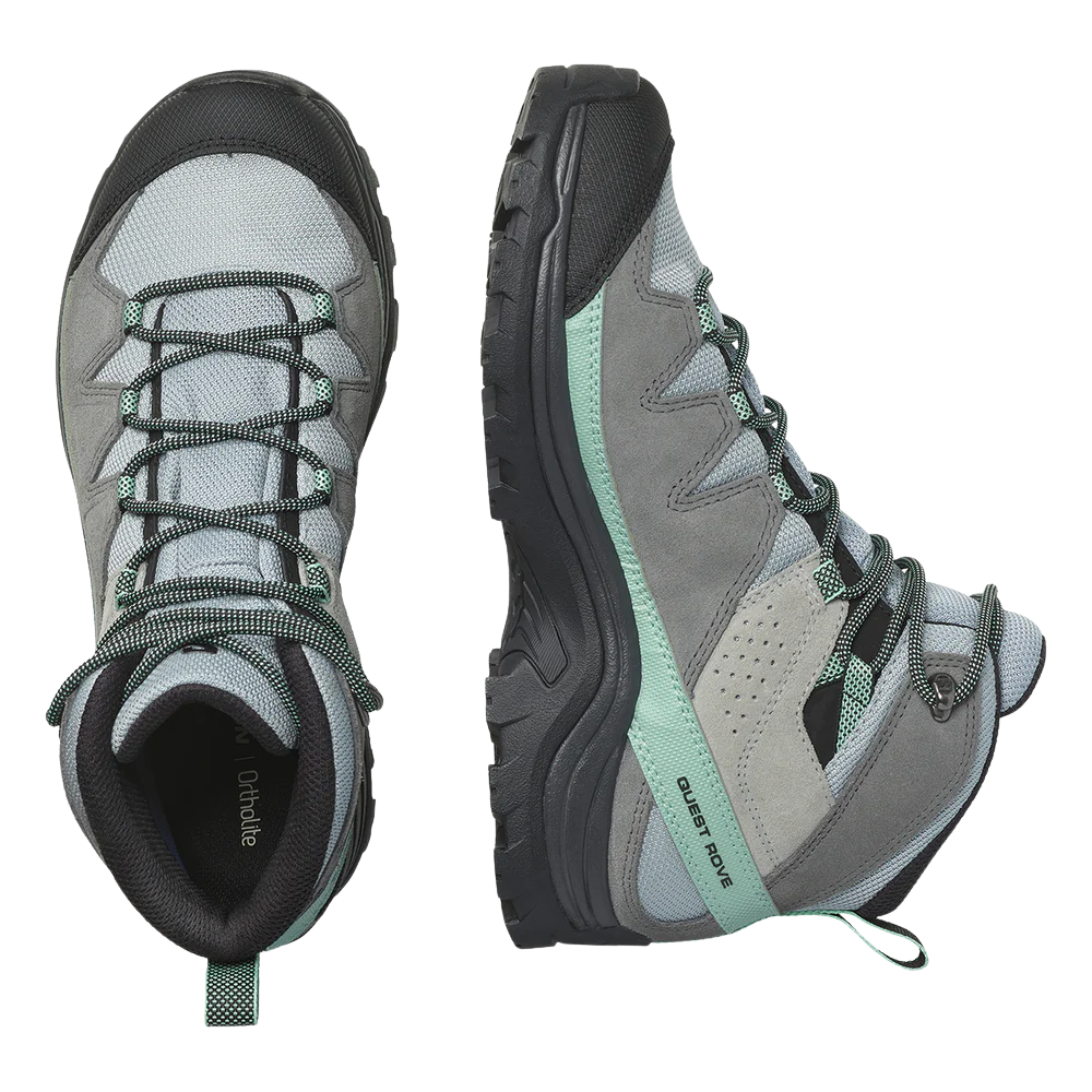A Bota Salomon Quest Rove GTX é para montanhismo extensivo, trilhas, travessias e expedições, com GORE-TEX impermeável, possui alto suporte para carregar mochila pesada.
