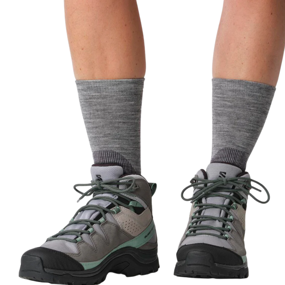 A Bota Salomon Quest Rove GTX foi projetada com leveza, estabilidade e conforto, o cabedal é em couro suede e Goretex, além de tecido resistente a abrasão e rasgos.