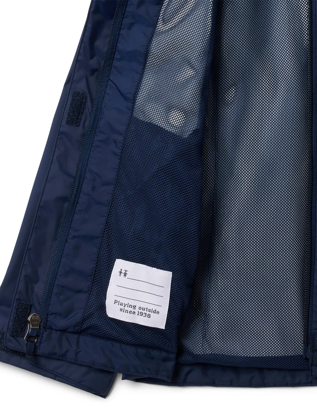 Os detalhes da jaqueta infantil impermeável Arcadia™ II foram desenvolvidos para deixar as crianças confortáveis ao longo de suas aventuras outdoor em ambientes úmidos.