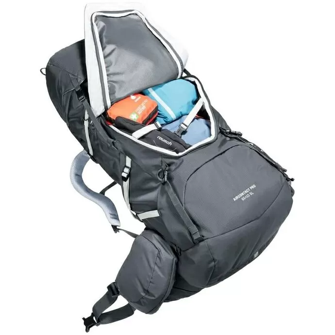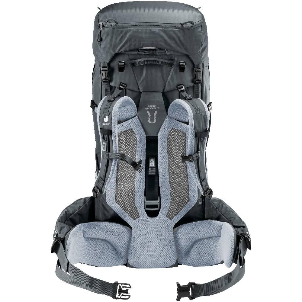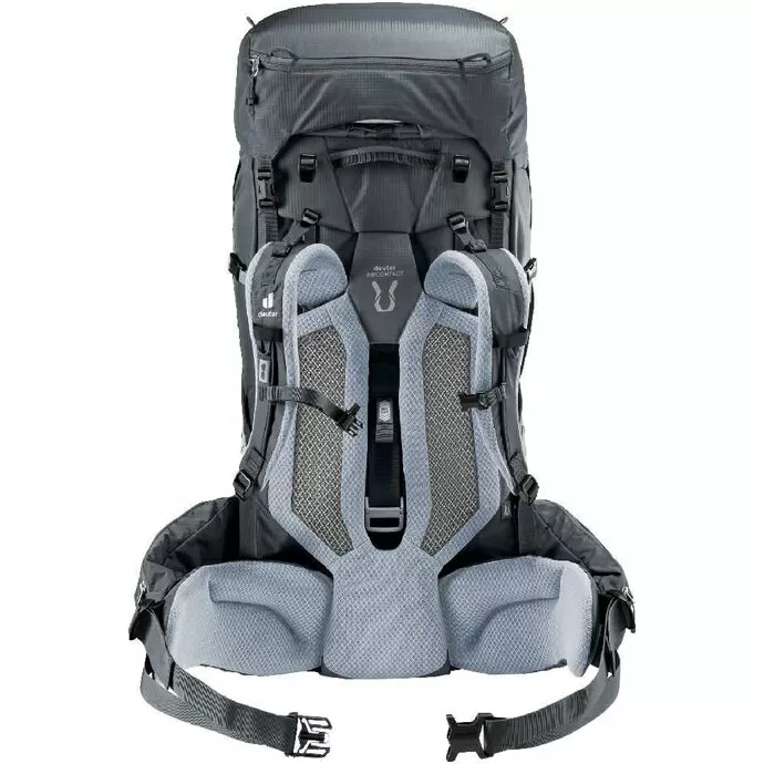 Para um ajuste personalizado possui um sistema traseiro Deuter Aircontact com ajuste de comprimento do costado VariSlide e alças de ombro ActiveFit giratórias, com ajuste de comprimento e proximidade.