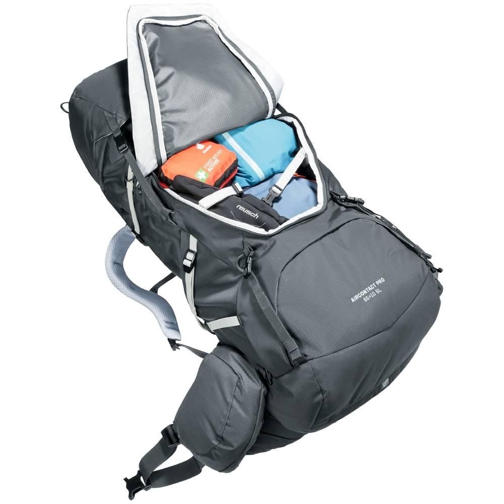 A Mochila Deuter Aircontact Pro 65+10 SL é uma cargueira com excepcional capacidade de carga indicada para trilhas e travessias com tecido resistente a abrasão e repelente à água.