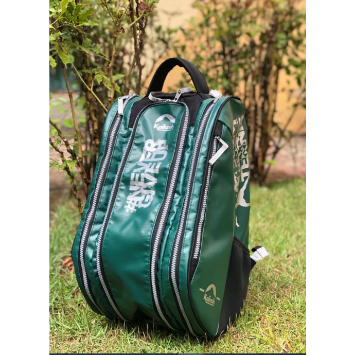 Confeccionada em tecido super resistente, possui espaço nas duas laterais para suas raquetes. A divisão lateral é confeccionada com tecido térmico e pode carregar até duas raquetes em cada divisão. Nestas divisões também é possível carregar um Notebook de até 15 polegadas.