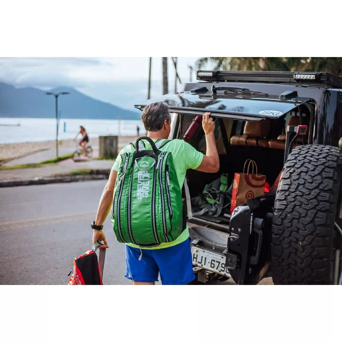 E a grande sacada é um outro compartimento impermeável para depois dos jogos transportar no retorno para casa seus pertences “molhados” nas areias como meias e sapatilhas, calçados ou peças de vestuário.